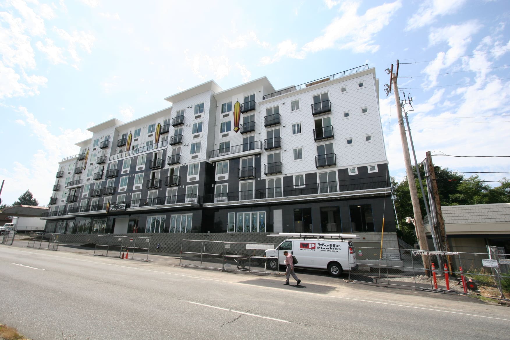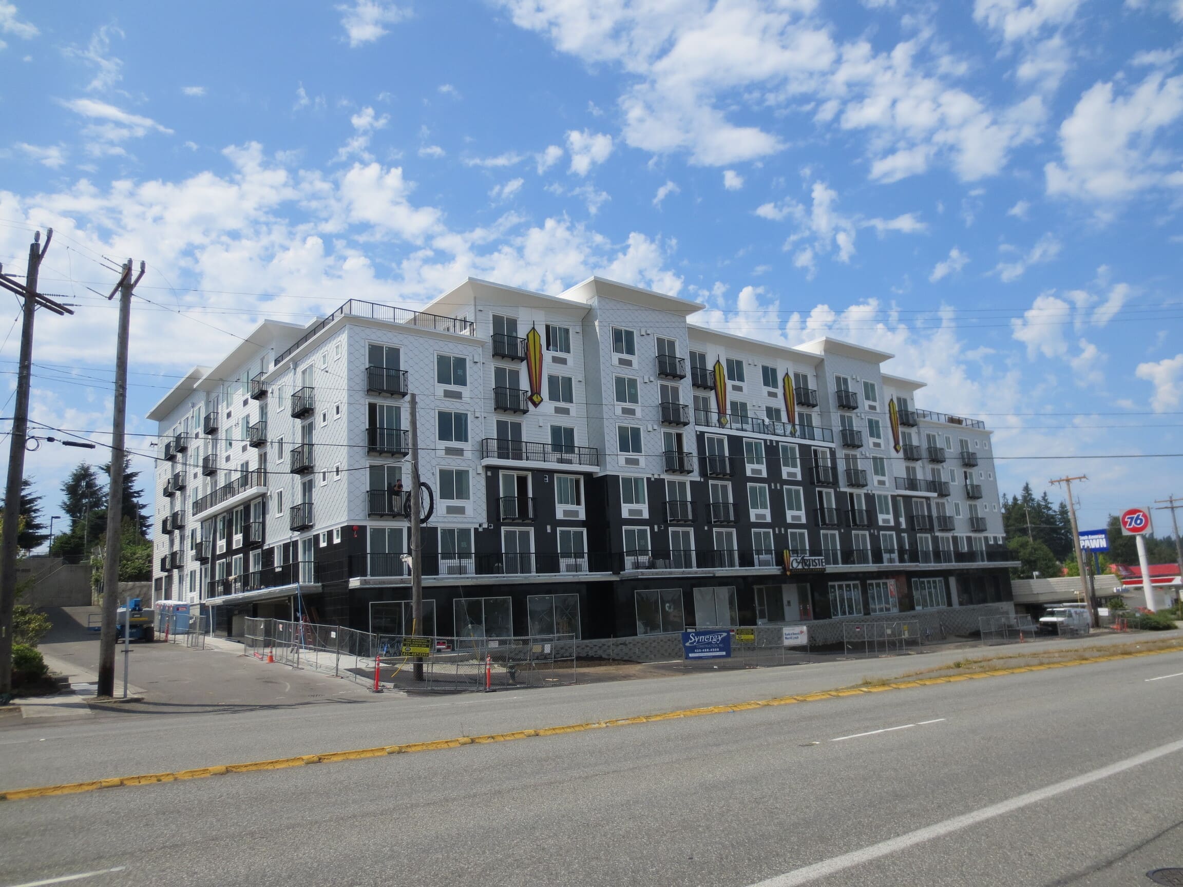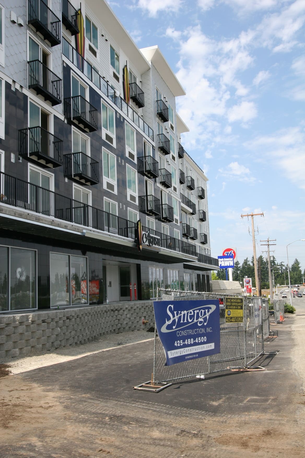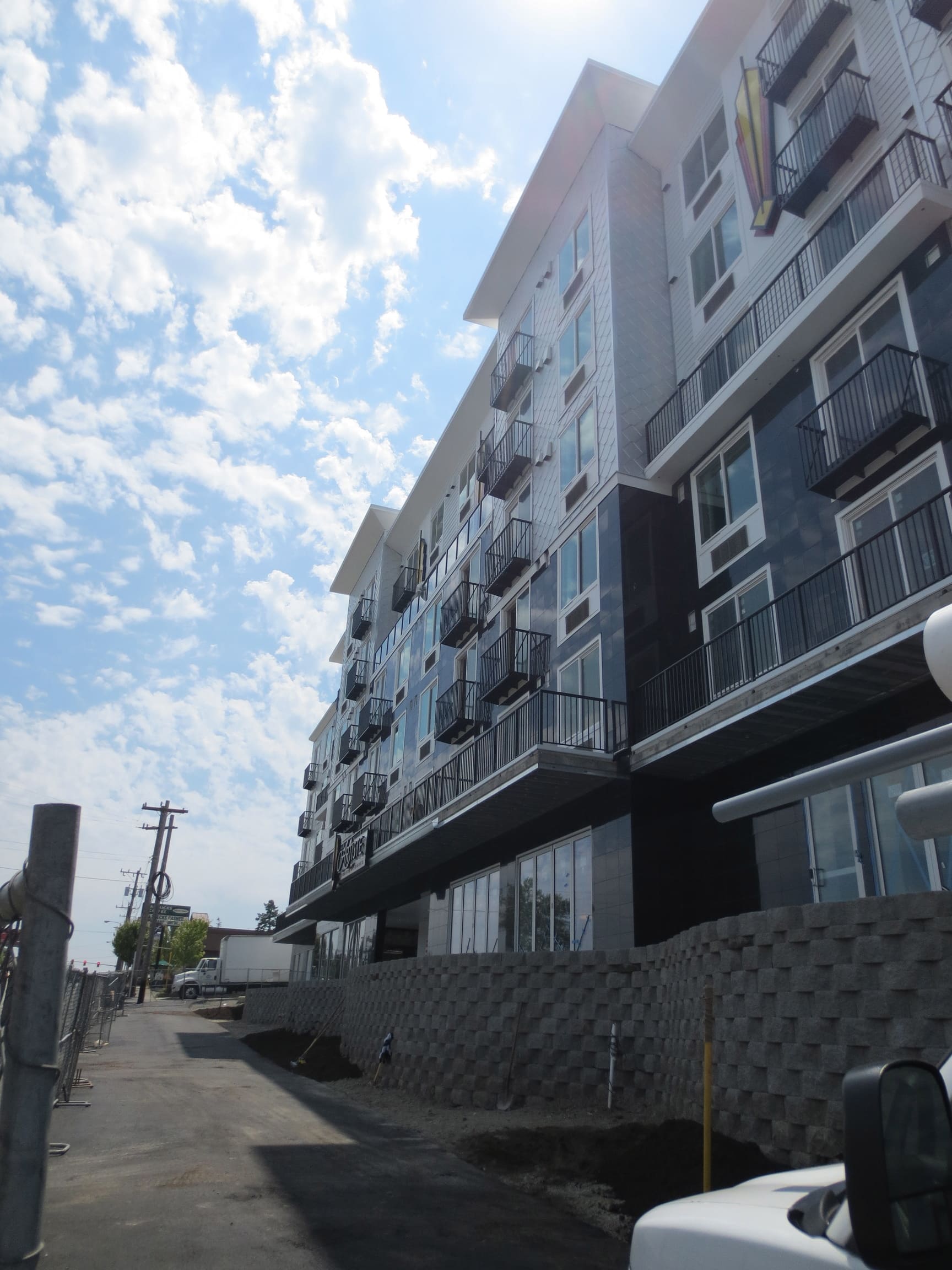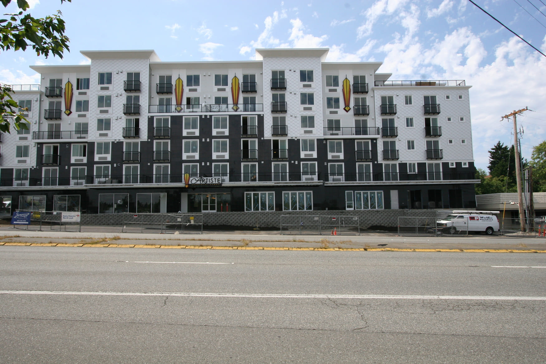 New construction of 148-units of residential over two levels of underground parking and commercial space. The complex is a mix of studio, 1 bedroom and 2 bedroom units, and has two levels of underground parking along with a large area for bicycle parking. The building features a furnished central courtyard with a water feature, a large rooftop green space and pavers, and a luxurious lobby with high-end finishes and an exercise room.