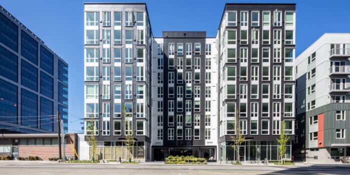 New construction of six levels of affordable workforce housing over one level of parking, totaling 57 units. 12 of the units are reserved for homeless families, eight units for veterans and three units for families with children having developmental disabilities. Built on a tight infill site in the heart of Downtown Bellevue. The funding for this project included low income housing tax credits, federal AHP, and the state housing trust funds.