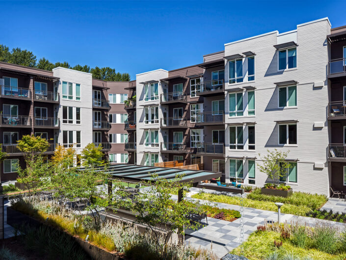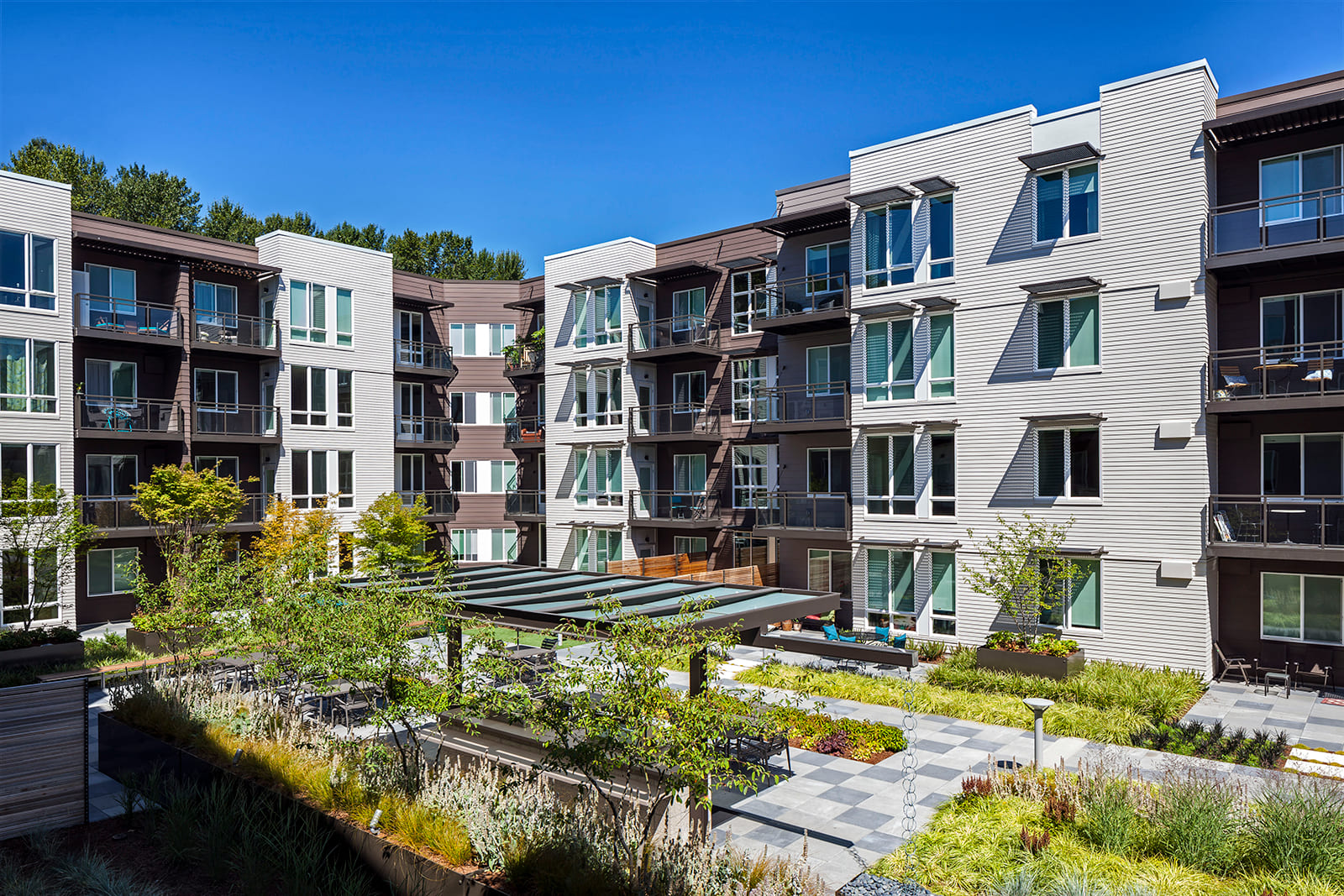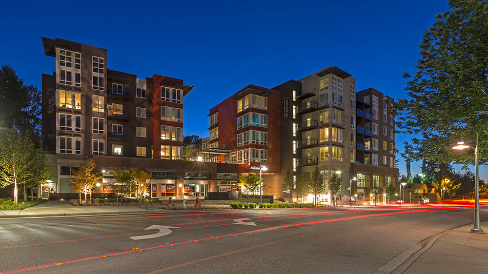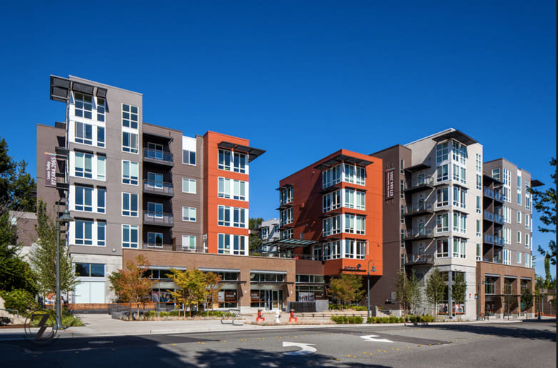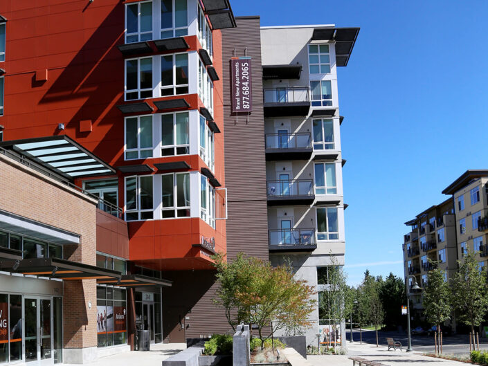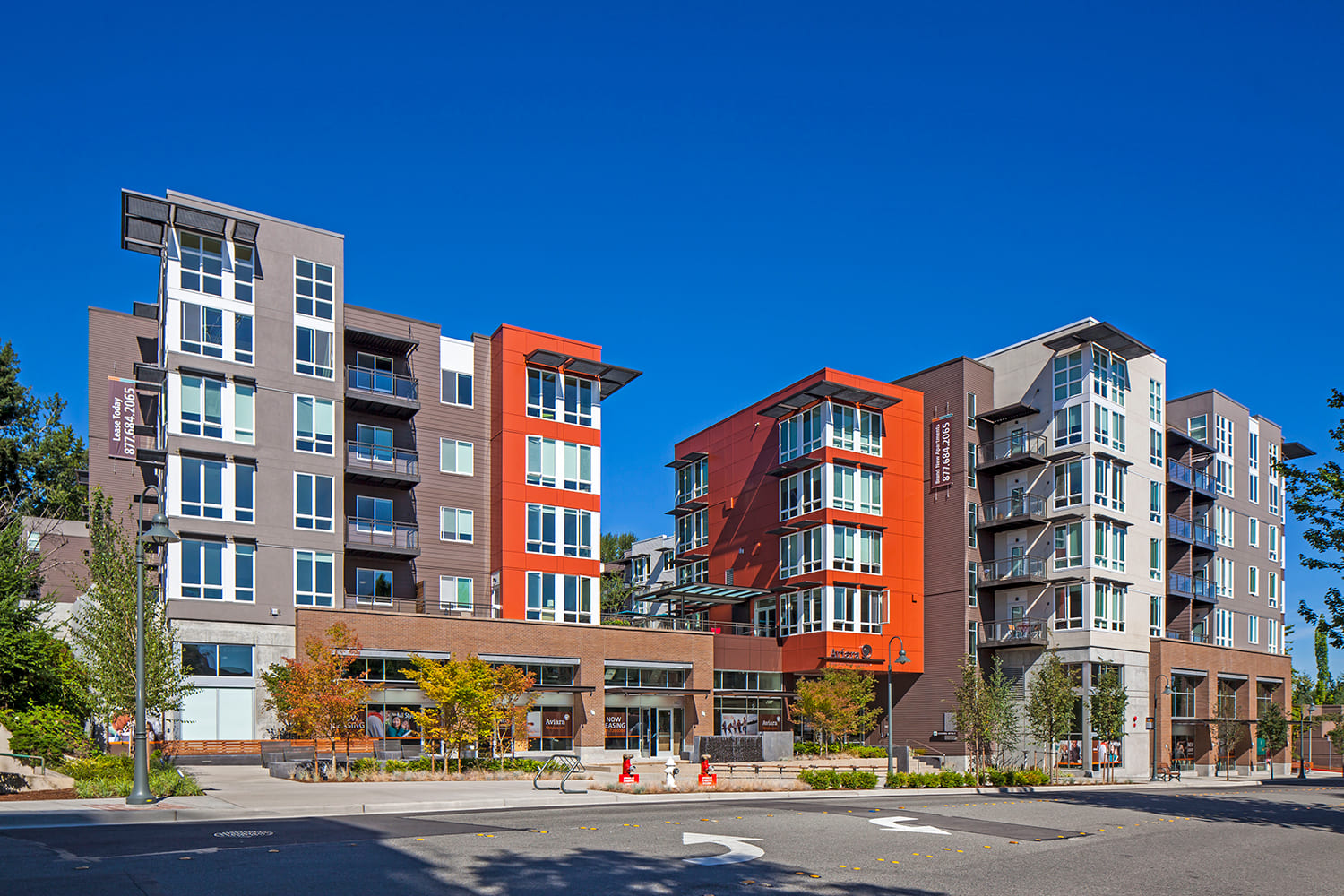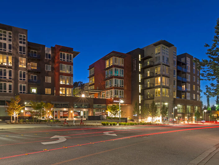 Located on Mercer Island, the Aviara Apartments project consists of four levels of luxury residential units, constructed above 17,000 square feet of grade-level retail space, and two levels of below-grade parking. The new building has 166 residential units consisting of 26 different floor plans and 312 total parking spaces, with 85 set aside for business customers.