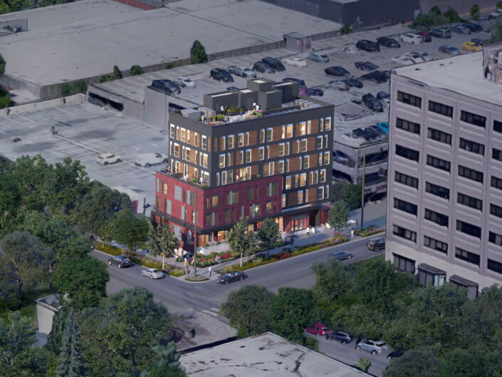 An extended-stay, 37-key hotel located adjacent to the Swedish Medical Center campus on Cherry Hill, providing accommodations for visiting patients, families, and medical staff. The six-story building features comfortable guestrooms, select private terraces, and amenities such as a fitness room to support longer stays.