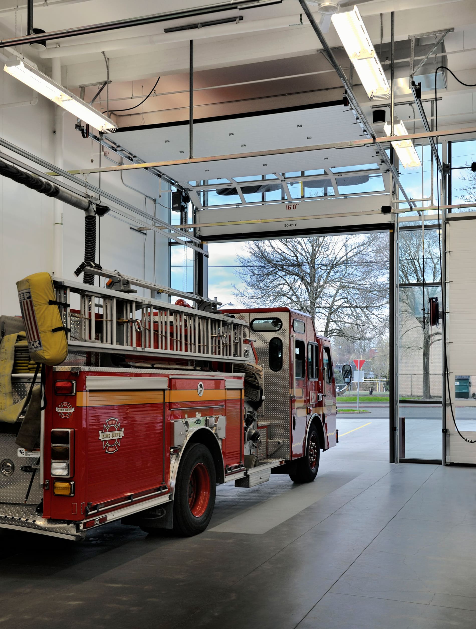 This project was able to achieve LEED® Gold certification. Geothermal wells that extend 300 feet below the building provide heating and cooling for the living areas of the building while high efficiency gas heaters serve the apparatus bay. The living areas utilize natural ventilation with operable windows in the bunk areas and there is ample daylighting throughout the building. The project features a bio-swale for collection of storm water and a large detention vault that was added to the design of the project during construction