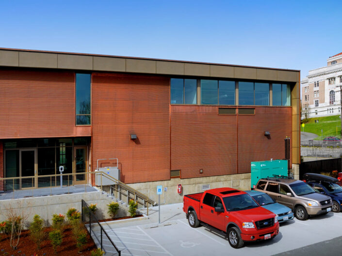 Fire Station #30 was constructed to suit the modern needs of an emergency service facility along with the needs of those who live and work in the station. This includes accommodating the modern machinery used in the facility and planning for contingencies such as biohazards and contamination cleanup. The building was constructed using light-weight framing that required great attention to detail for proper installation. The copper cladding system that was used on the building required a great deal of detail work, each panel was custom fabricated for a perfect fit.