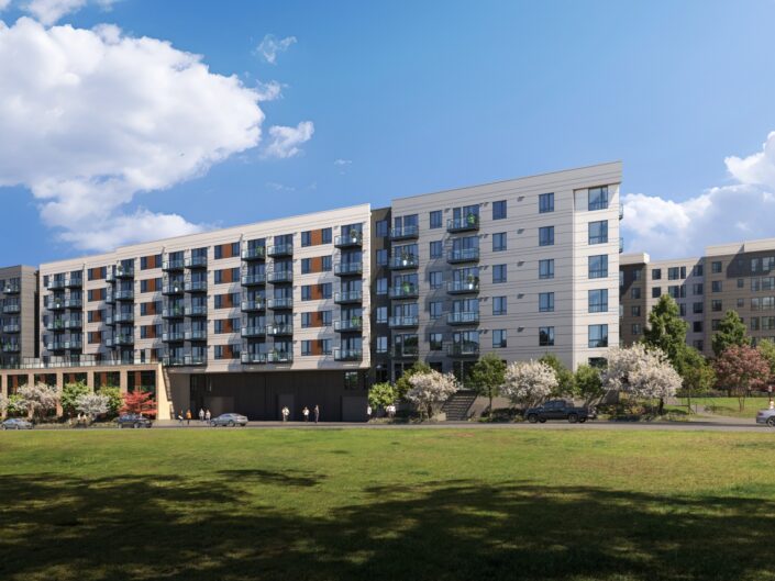 The development consists of two residential buildings totaling 726 luxury apartment homes. Residents will enjoy expansive views of Puget Sound, the Cascade and Olympic Mountains, and Mount Rainier.